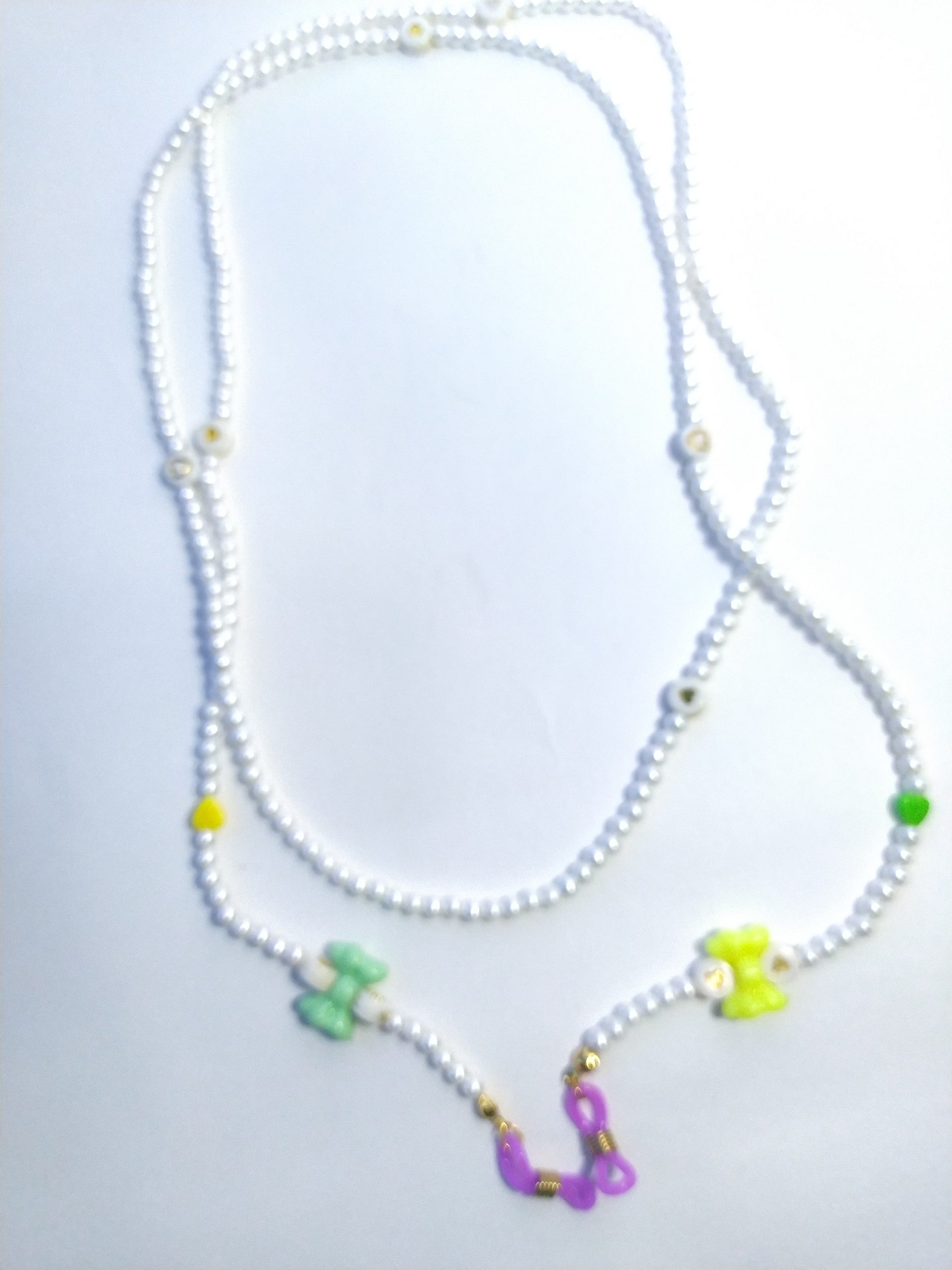 Cordon para gafas elaborado en perlas acrilicas y lacitos de varios colores