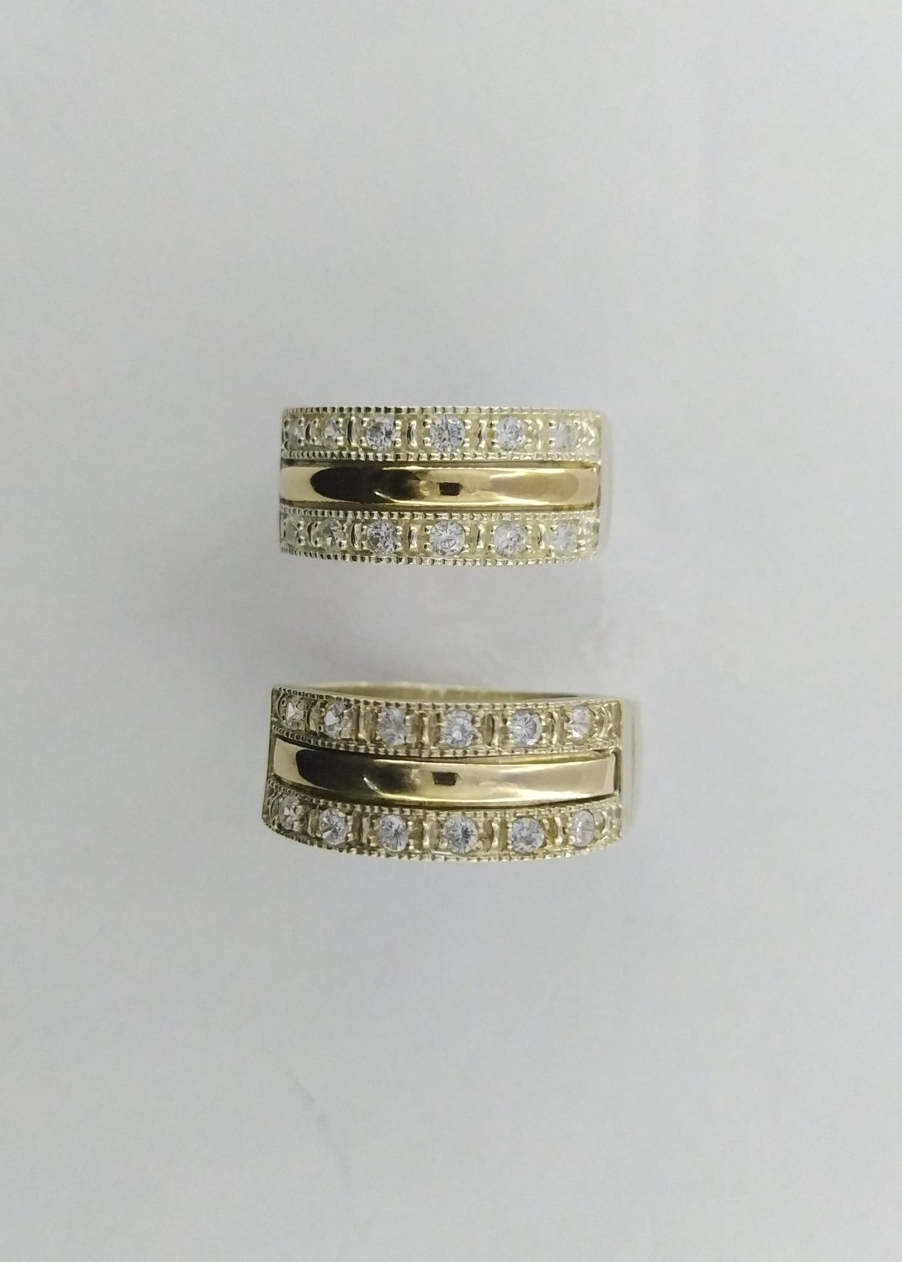 Argollas de matrimonio en plata ley 925 y baño de oro nacional y circones en la parte superior de 3mm de grosor