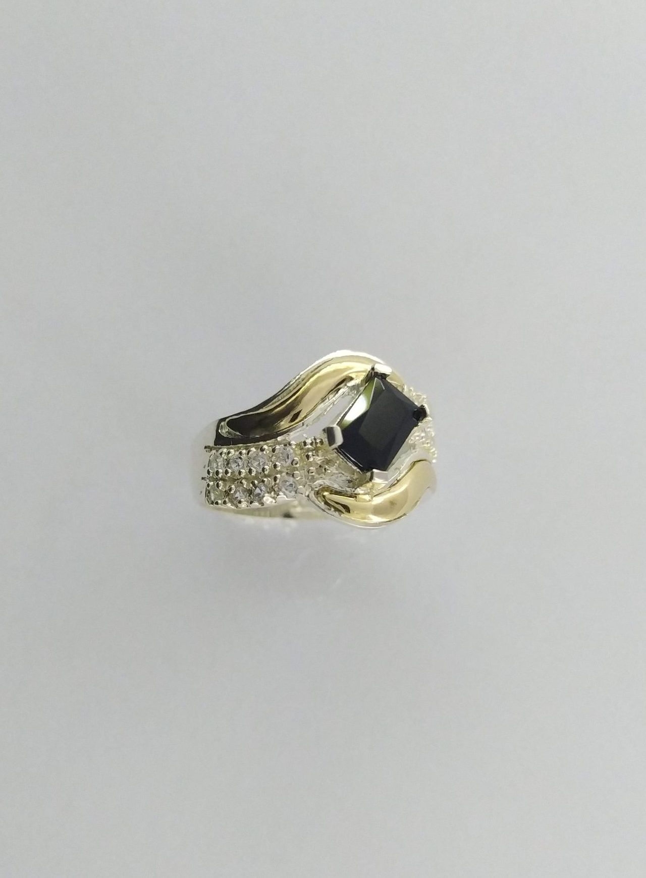 anillo en plata ley 925 y baño de oro nacional circon negro de 3mm de grosor