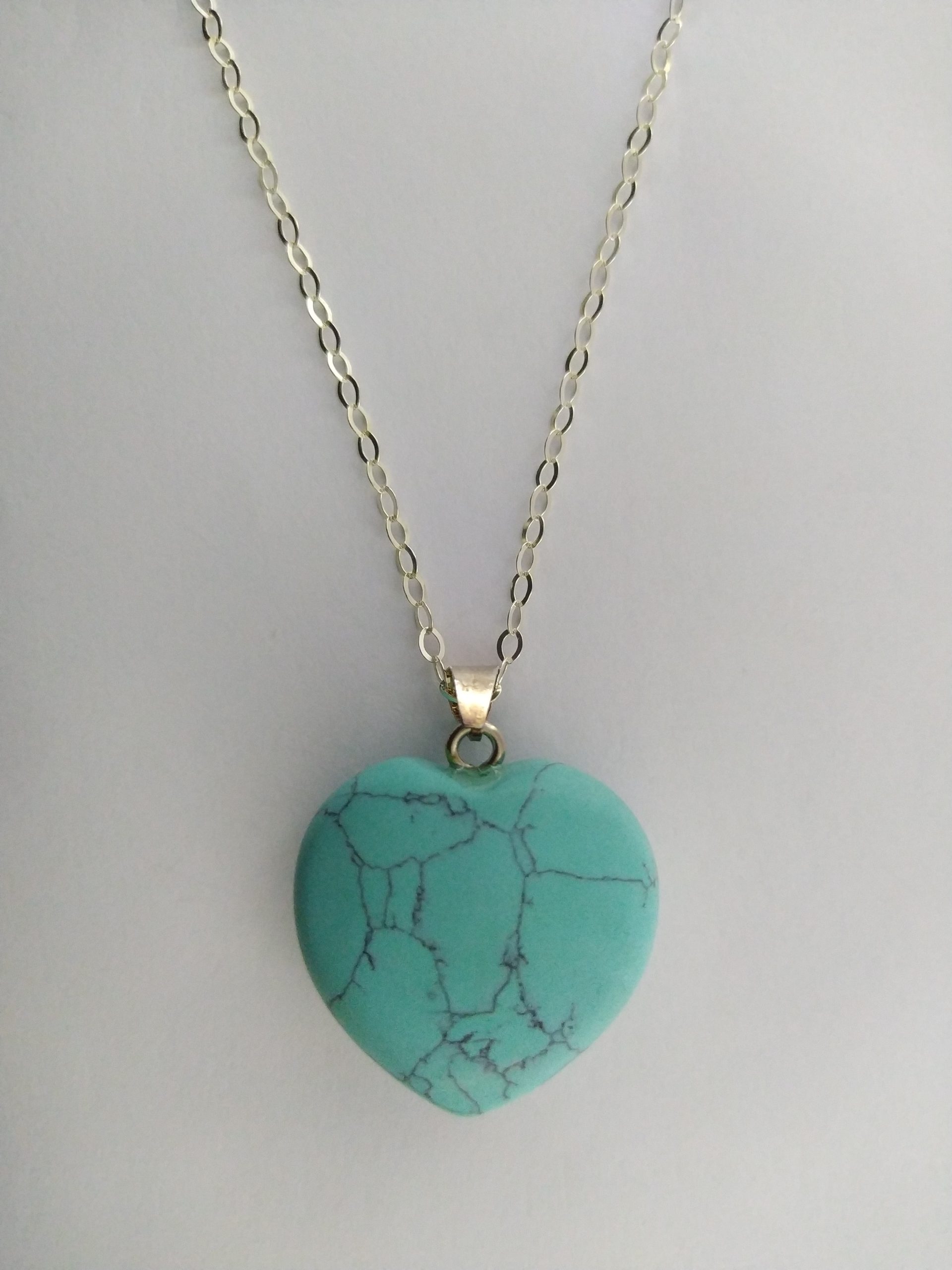Cadena en plata ley 925 y dije de corazon Azul turquesa