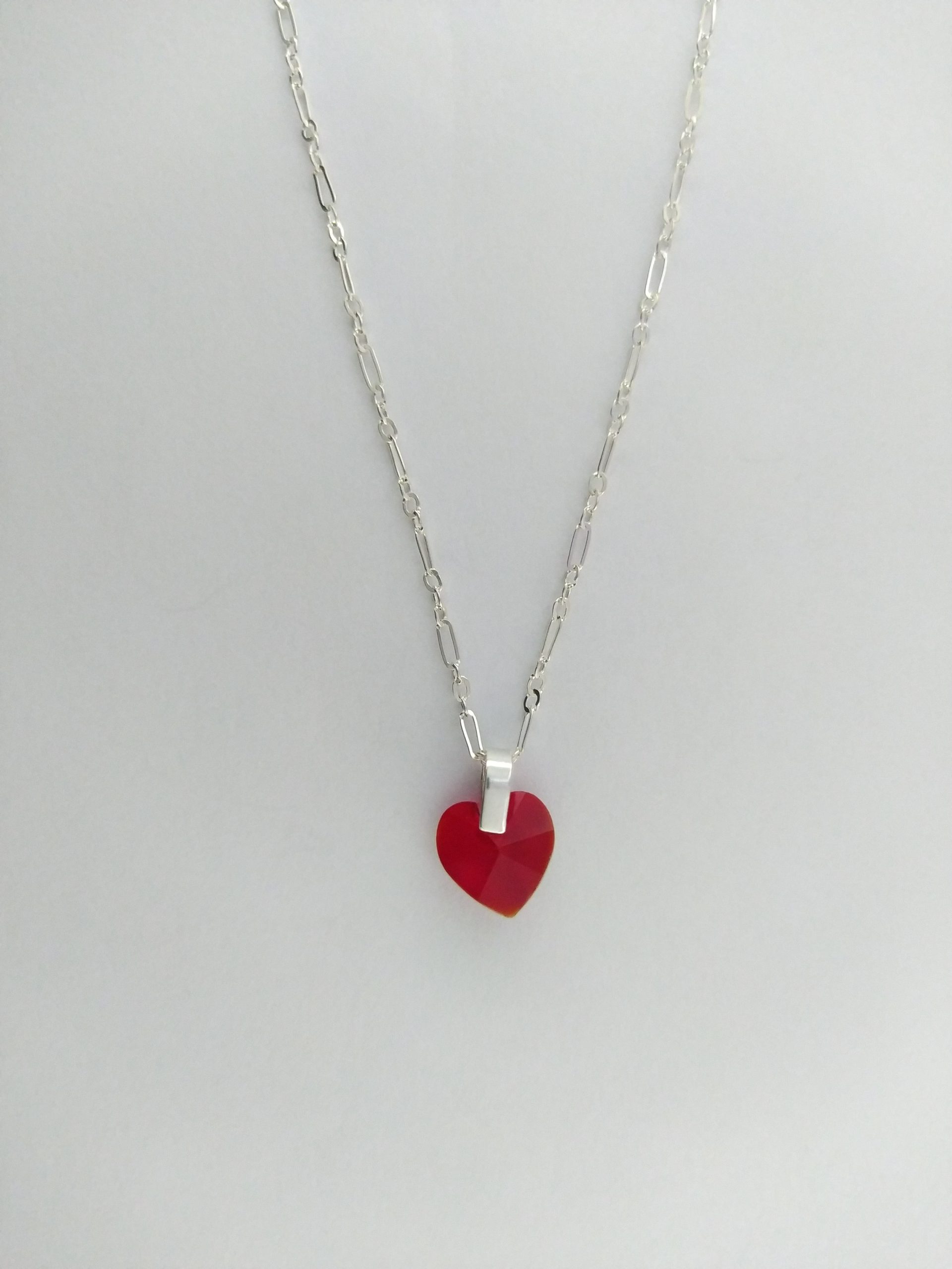 Cadena en plata ley 925 y dije de corazon Rojo