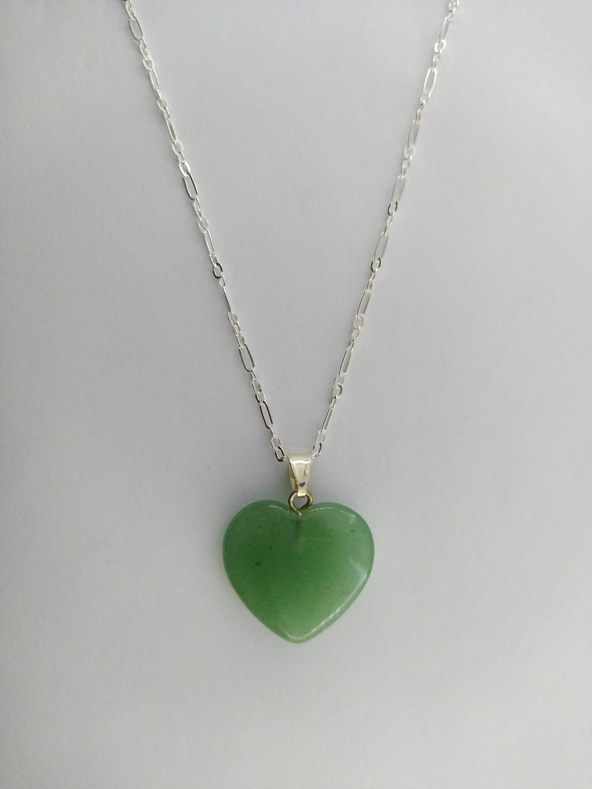 Cadena en plata ley 925 y dije de corazon Piedra Jades