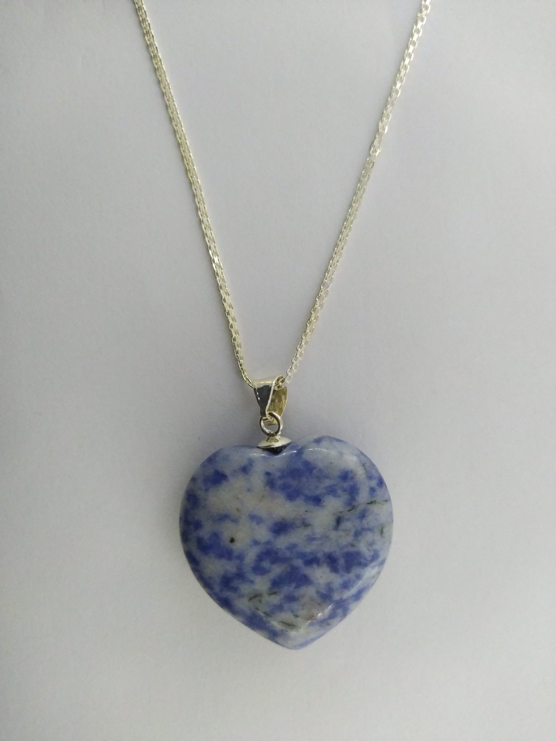 Cadena en plata ley 925 45Cm y dije de corazon Azul piedra Sodalita