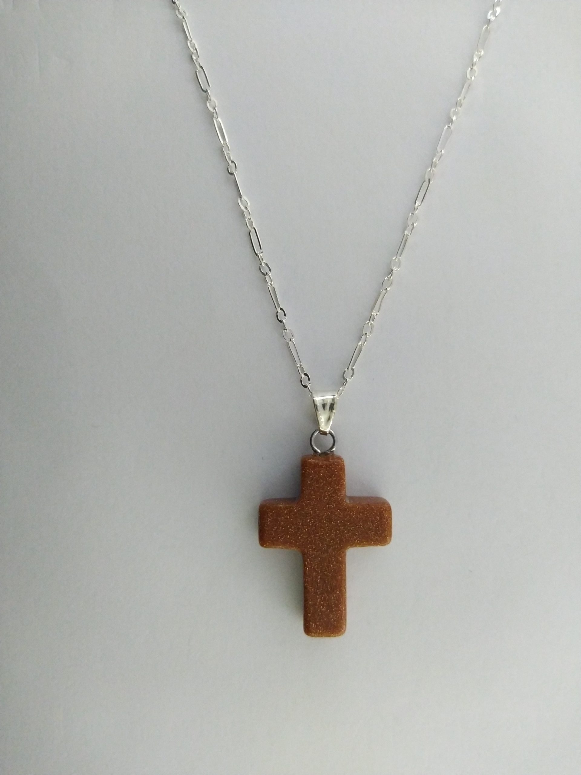 Cadena en plata ley 925 45Cm y dije Cruz en piedra lluvia de oro