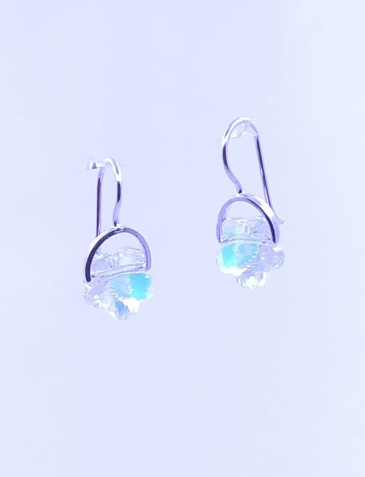Pendientes en plata ley 925 y Flor blanca de cristal