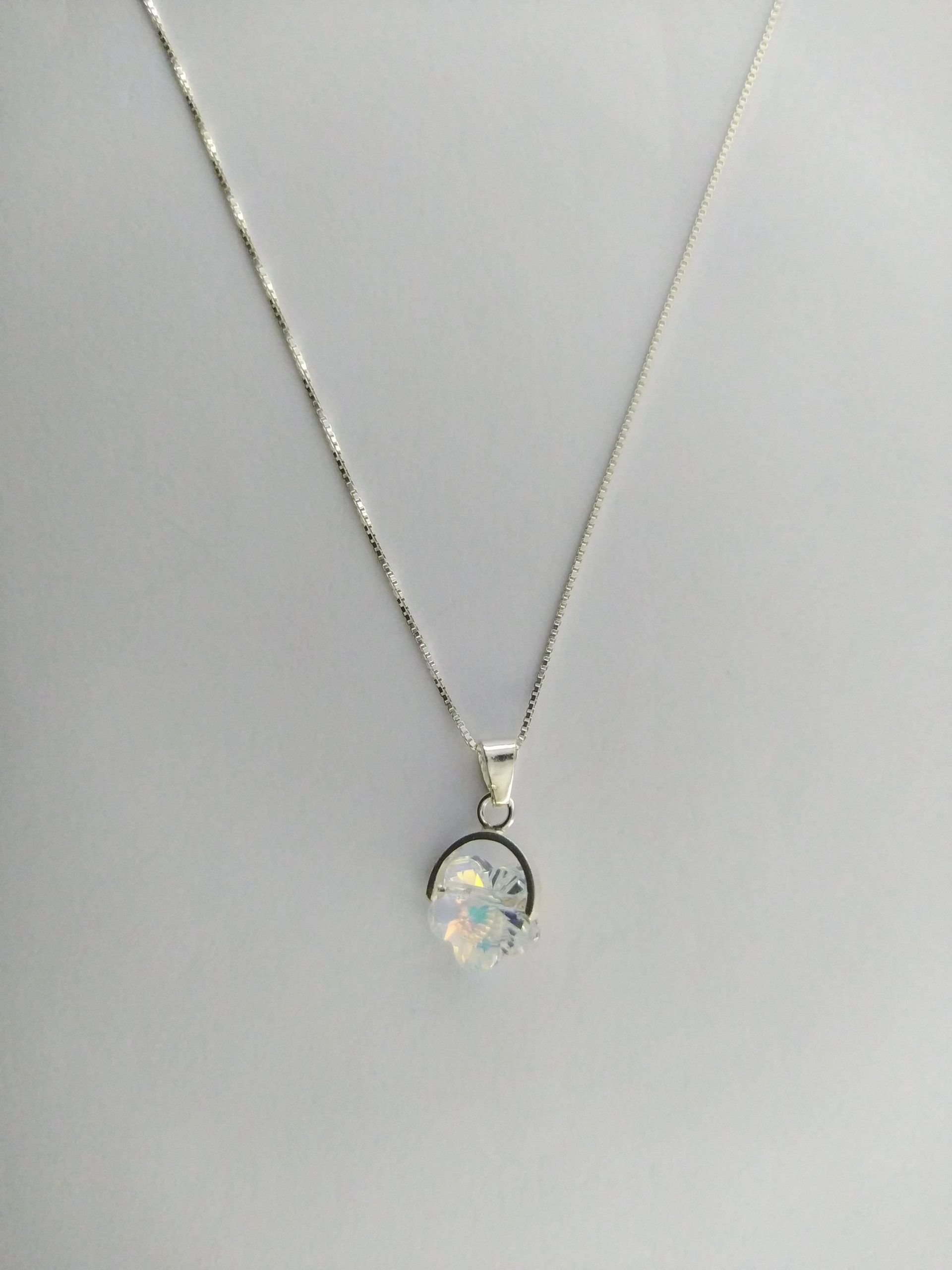 Cadena en plata ley 925 y dije flor de cristal
