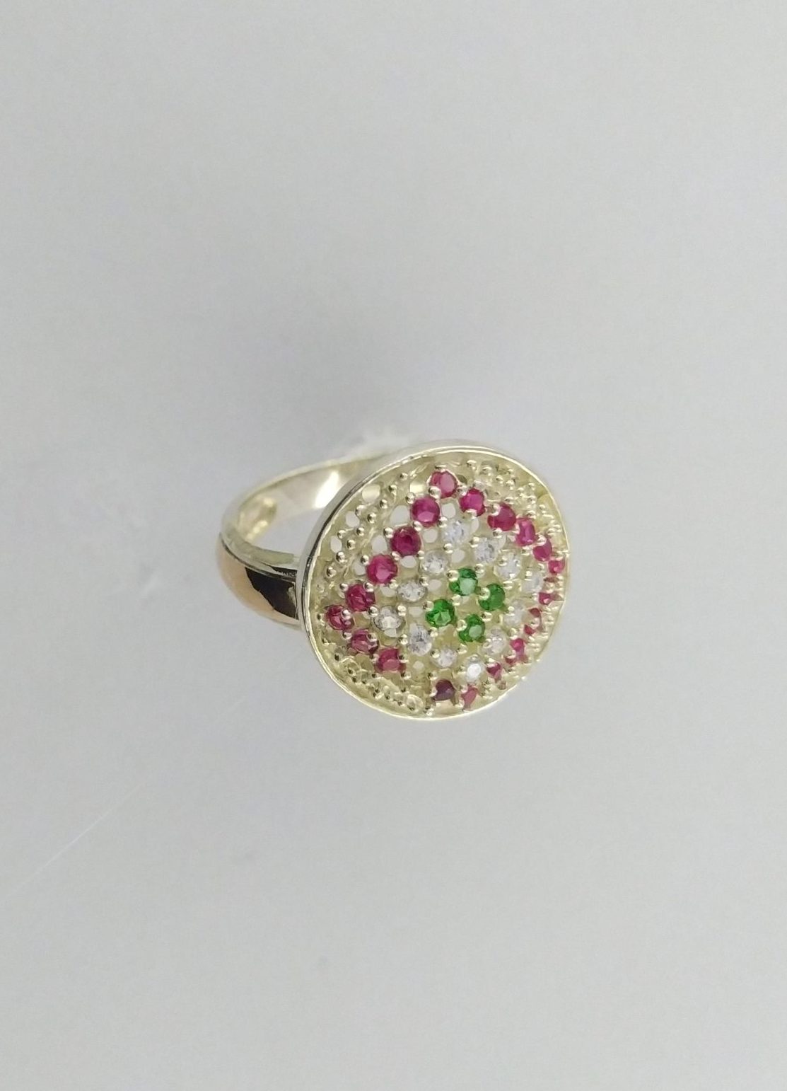 Anillo en plata ley 925 y baño de oro nacional y circones de colores de 3mm de grosor