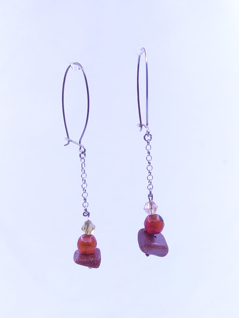Pendientes en plata ley 925 con Agata naranja y piedra lluvia de oro