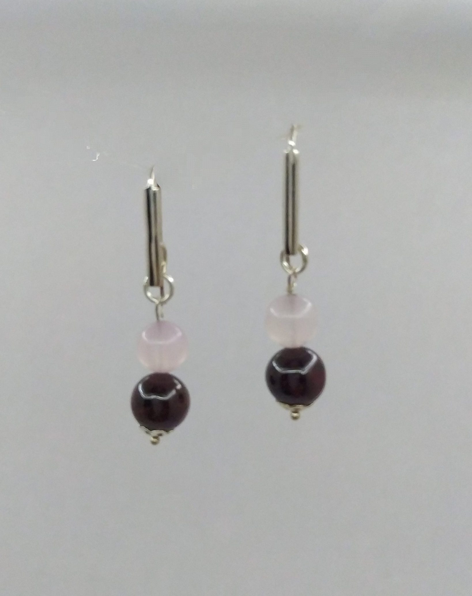 Pendientes en platal ey 925largos con esferas cuarzo rosa y amatista