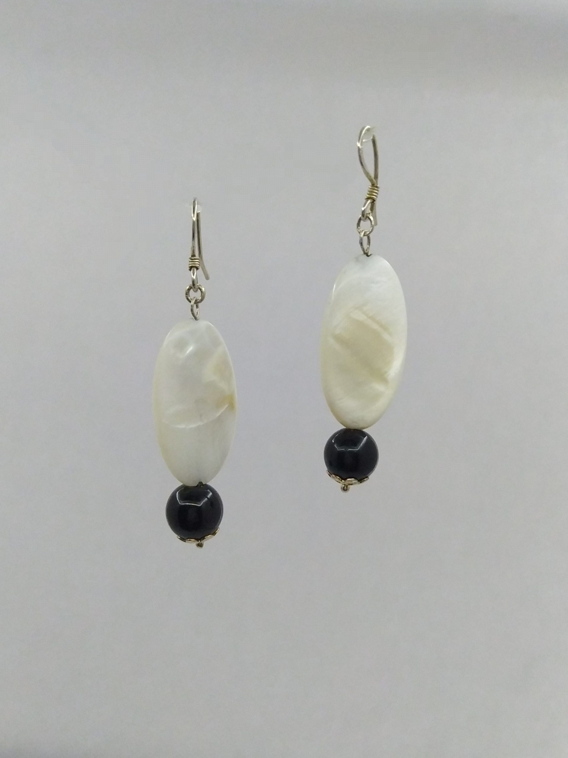 Pendientes en plata ley 925 nacar blanco ovalado y esfera de onix