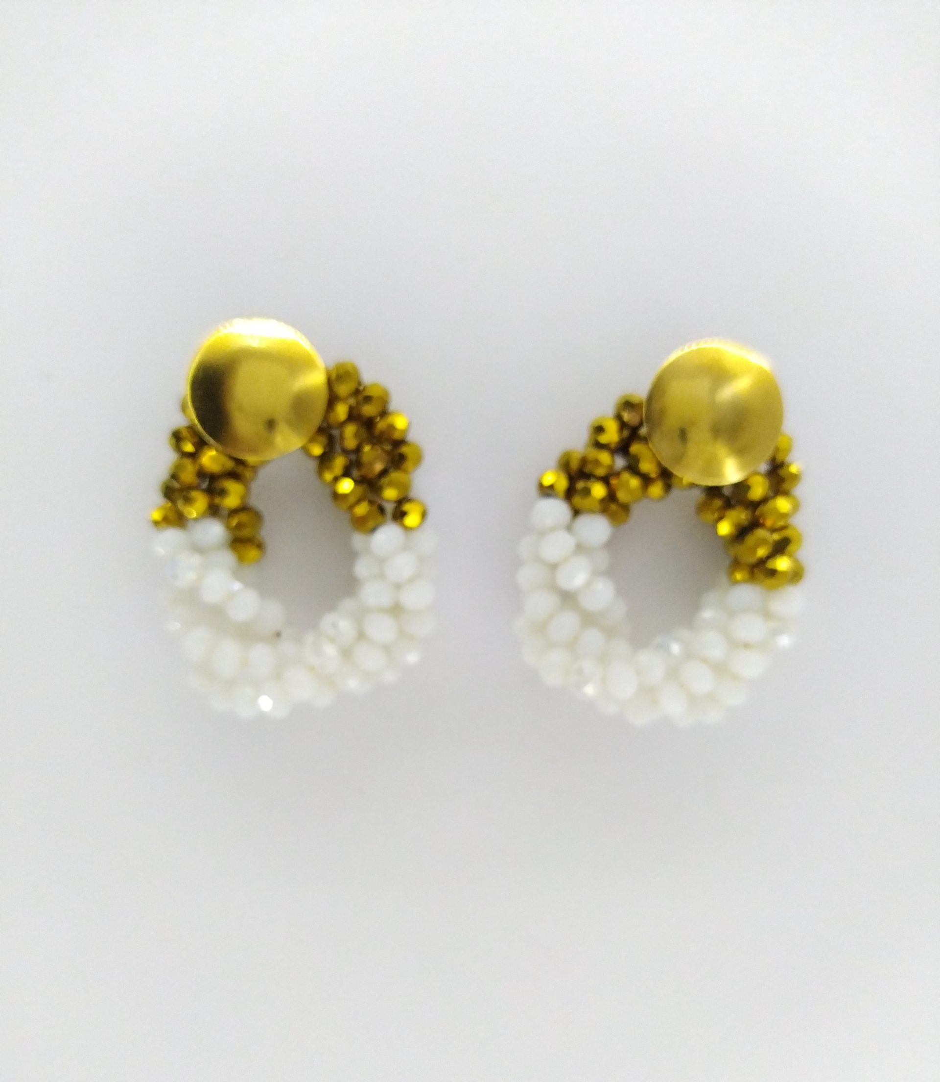 Un par de topos en acero dorado grandes esferas trensadas en murano 3mm blanco y dorado Color: Blanco y dorado