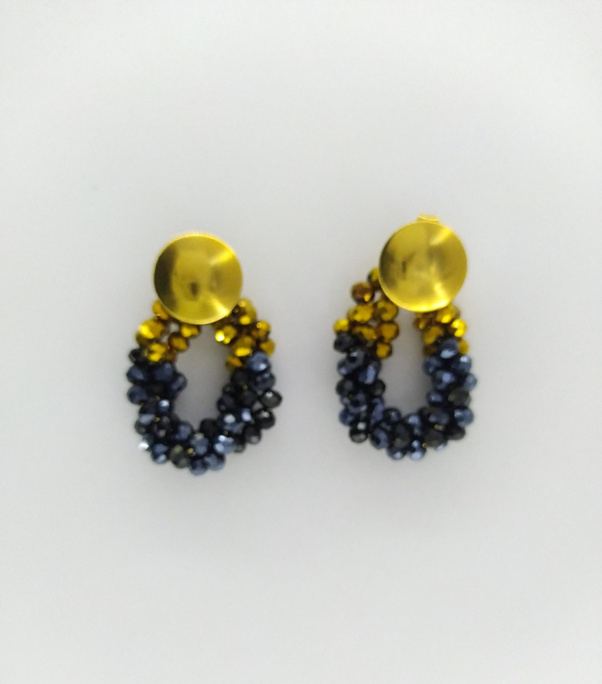 Un par de topos en acero dorado grandes esferas trensadas en murano 3mm negro y dorado