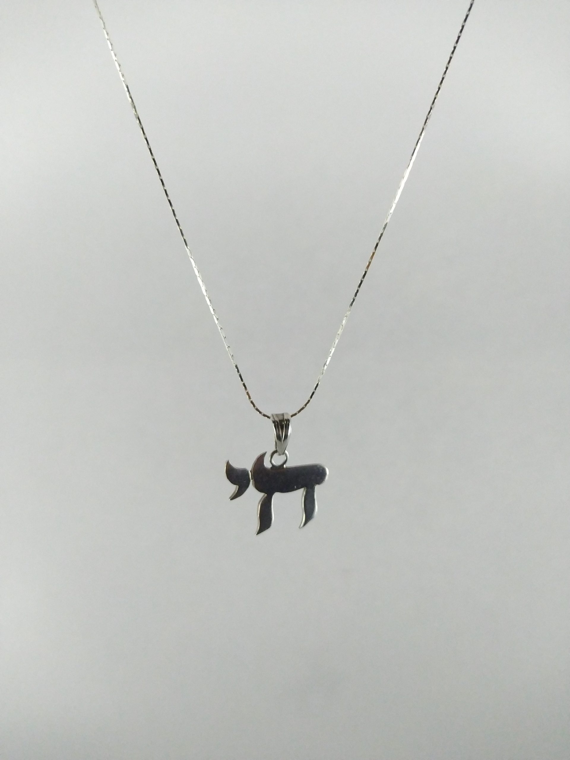 Cadena en plata ley 925 y dije letras hebreas plateado